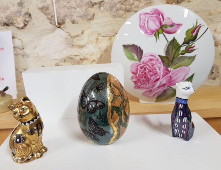 L’ART’ELIER DE JOCE vous propose des cours de peinture sur porcelaine pour débutants ou initiés à St Porchaire tout près de Saintes. Si vous souhaitez vous perfectionner, je propose également des ateliers dans différentes techniques : Technique classique Meissen, Sèvres … Techniques Modernes ou Scandinave : relief, creusage, travail des métaux précieux, fibre de verre, travail à la plume, grattage … Technique Américaine ou Brésilienne (travail à l’huile molle).
